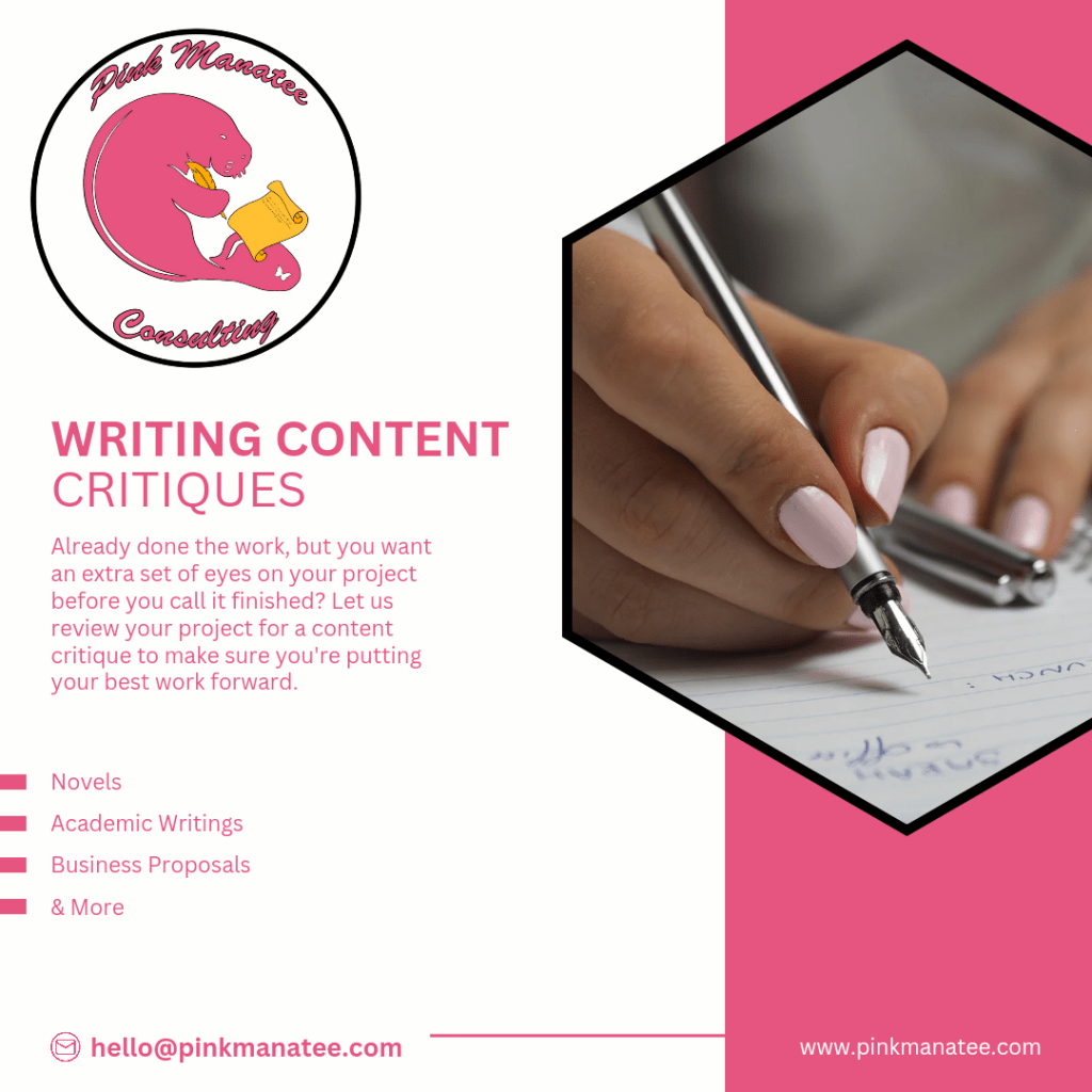 Pink Manatee Consulting is a privately owned firm that specializes in providing a wide array of writing services.